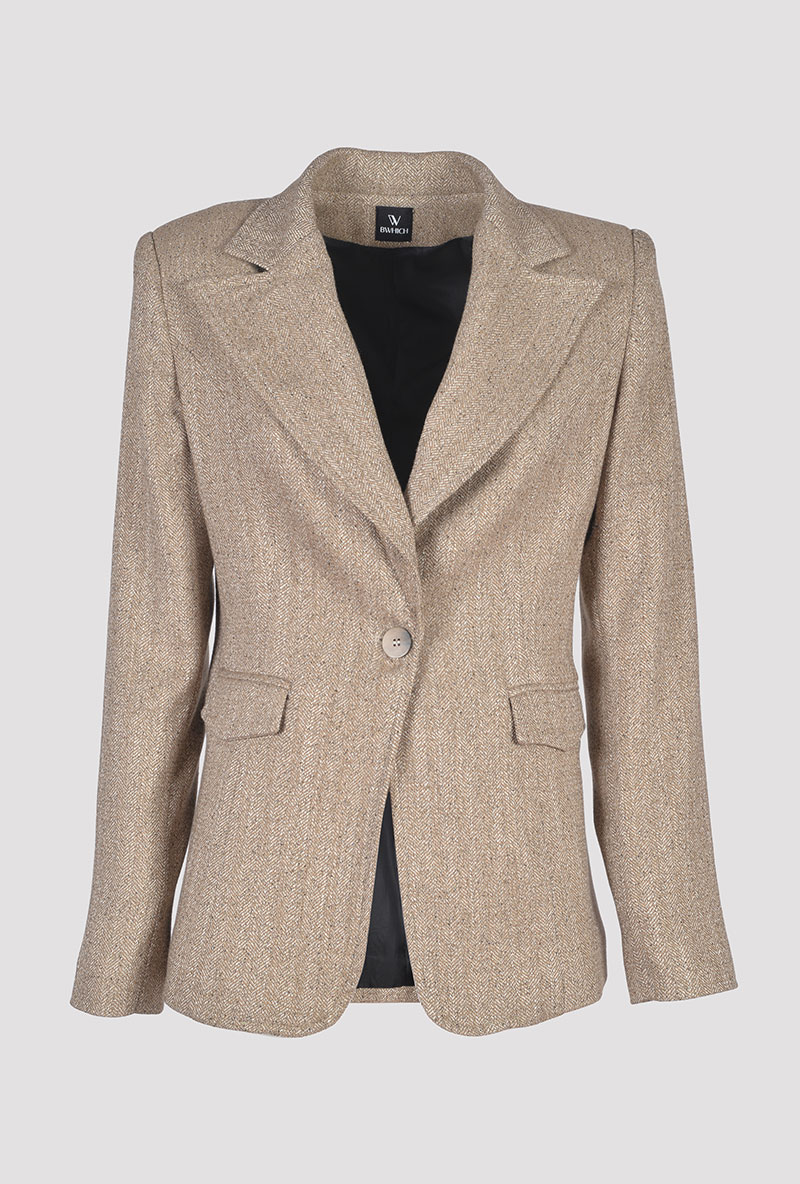 Beige Herringbone Classic Blazer front viewBeige Herringbone Classic Blazer front view